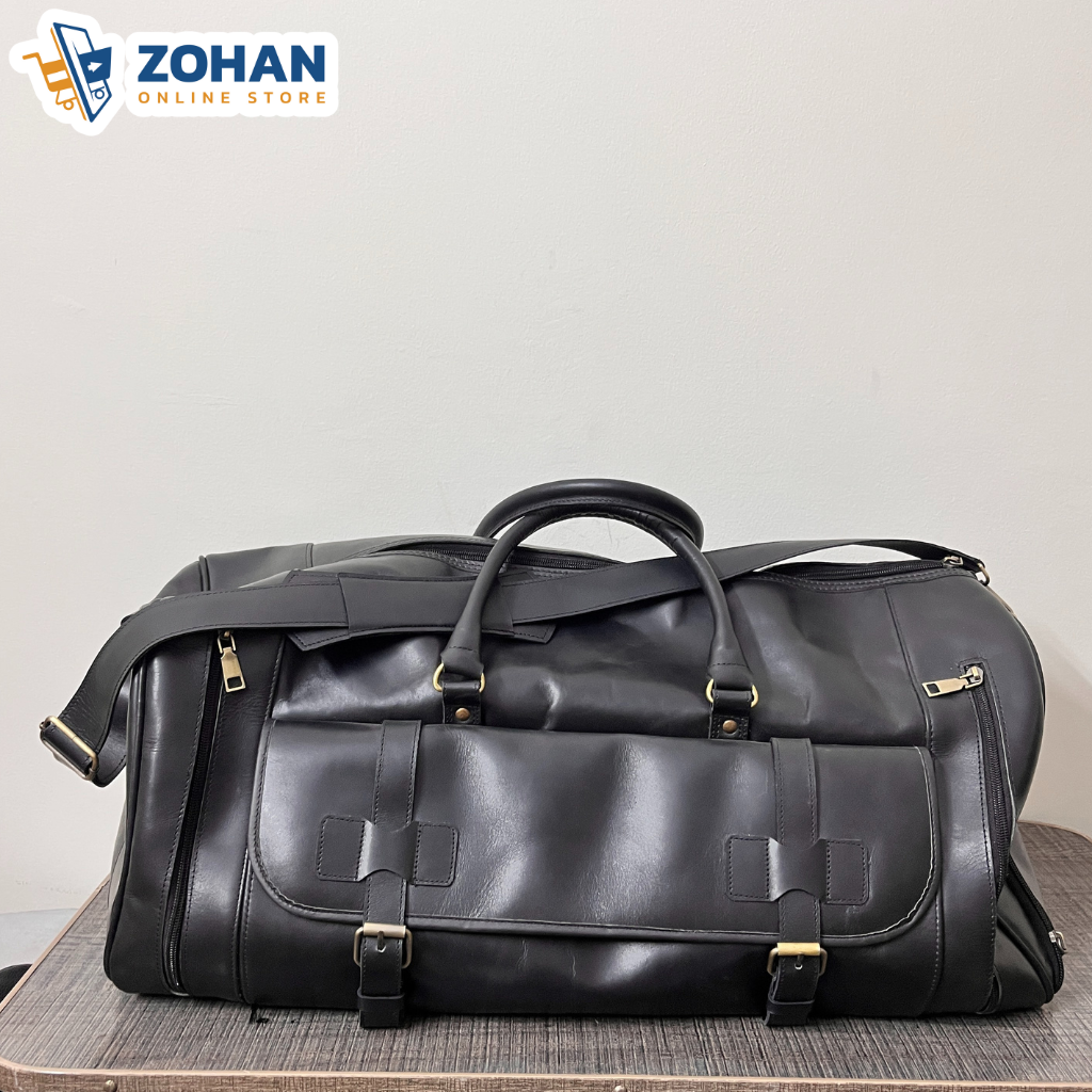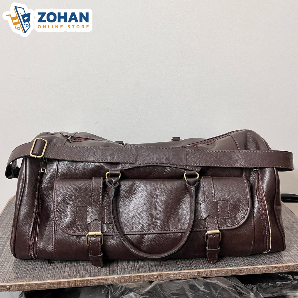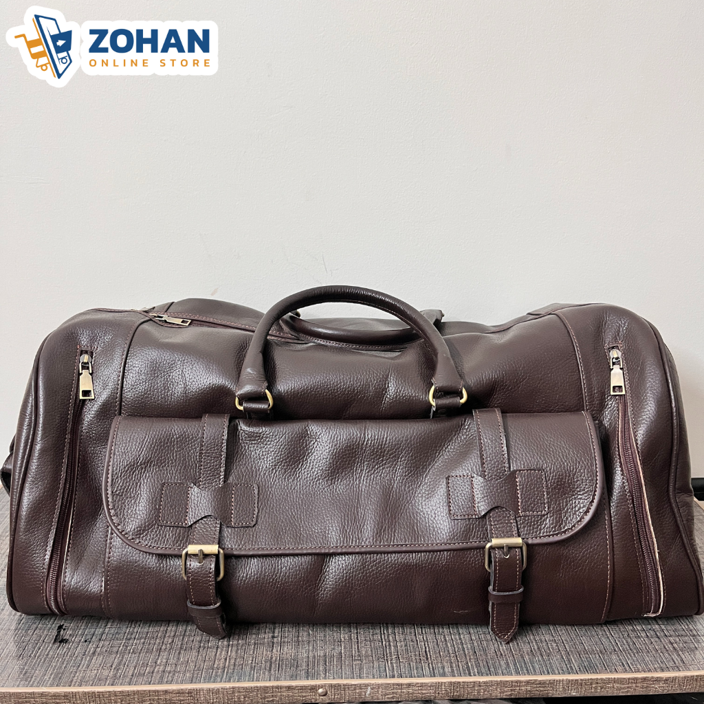 The spacious main compartment provides ample room for clothing and essentials, while secure zip closures and front buckle pockets add both functionality and style. Strong leather handles ensure comfortable carrying, making this bag reliable for both short trips and long journeys.